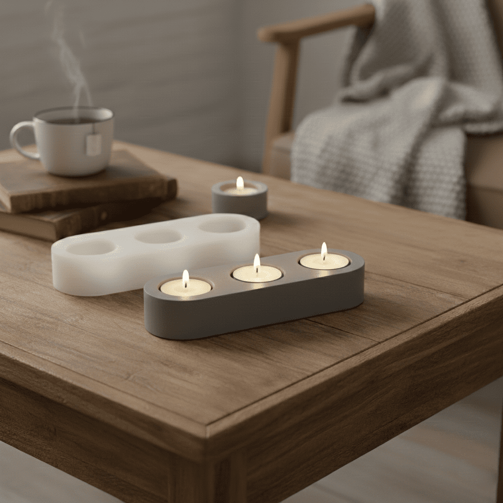 Zatrzymaj się na chwilę, wymieszaj, wlej do formy i obserwuj, jak powstaje Twój własny betonowy świecznik na trzy tealighty — minimalistyczny, estetyczny i jedyny w swoim rodzaju.